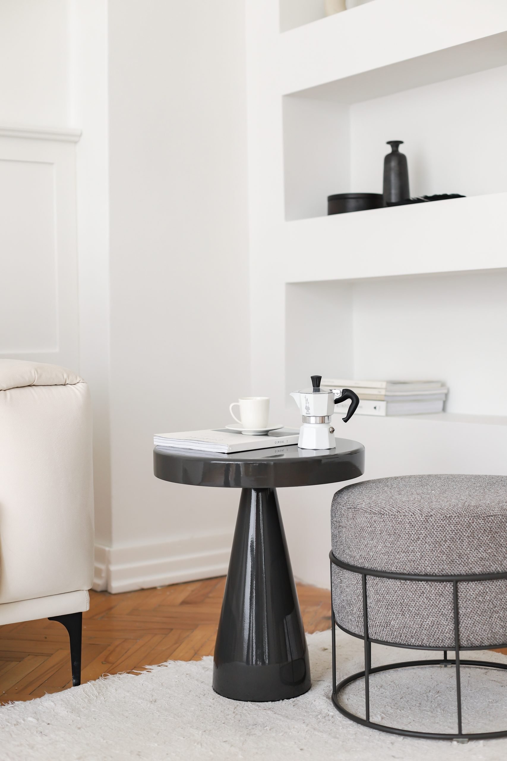 With its plain form and different color options which fits any space BUTTON Coffee Table may be used as a coffee table beside a sofa in the living room or as a nightstand in the bedroom. Although it is quite light, due its leg made of composite material, it is stable. Its tabletop is hand-worked from solid oak wood.